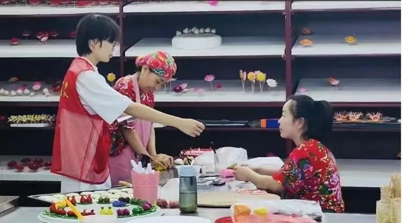 “馍”力绽放实践团深入山西省闻喜县,探索当地非遗瑰宝——花馍。小队成员们汇聚运城,启程前往花馍展馆,初步领略花馍的历史底蕴与精湛工艺,感受其背后承载的文化内涵与匠人精神。小队前往山西卫嫂食品有限公司,与花馍传承人贺铁芳面对面交流,深入了解花馍在民俗中的重要地位及其寓意深远的图案设计。在公司的花馍制作车间,成员们亲身体验了从和面、塑形到蒸制、上色的全过程,见证了面粉到精美花馍的神奇蜕变。在贺师傅的悉心指导下,大家亲手尝试制作,虽过程繁复,但那份触摸传统文化的喜悦难以言表。此次实践不仅让成员们掌握了花馍制作技艺,深刻体会到文化传承的重要性与紧迫感,更激发了传承与保护非物质文化遗产的热情。