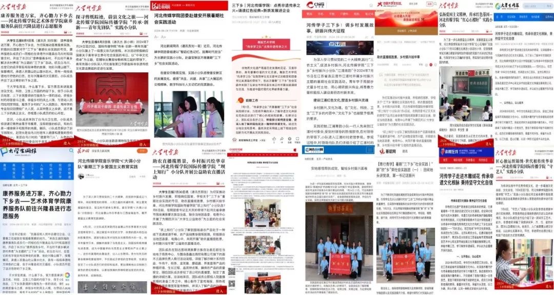 2024年暑期,我校师生行走祖国大地,感受时代巨变,以实际行动践行青春誓言。截至目前,共有49支社会实践小分队如期完成实地调研,27支社会实践团队被新华网客户端、石家庄日报、今日头条、中华网、河北新闻网等媒体关注报道40次。校团委继续开展“行走的思政课”——《2024社会实践·我们都是答卷人》青春风采联展专栏,发布专题报道31期,制作发布主题微团课4期。通过社会实践,实现了将学校专业教育向社会教育、家庭教育延伸,把思政小课堂同社会大课堂相结合,校内共性培养与社会实践个性发展结合,夯实了我校“思政+专业+社会实践”的实践育人模式。