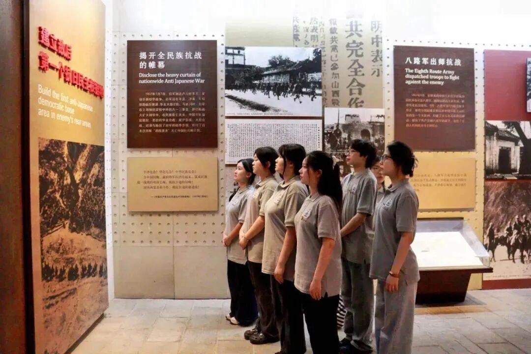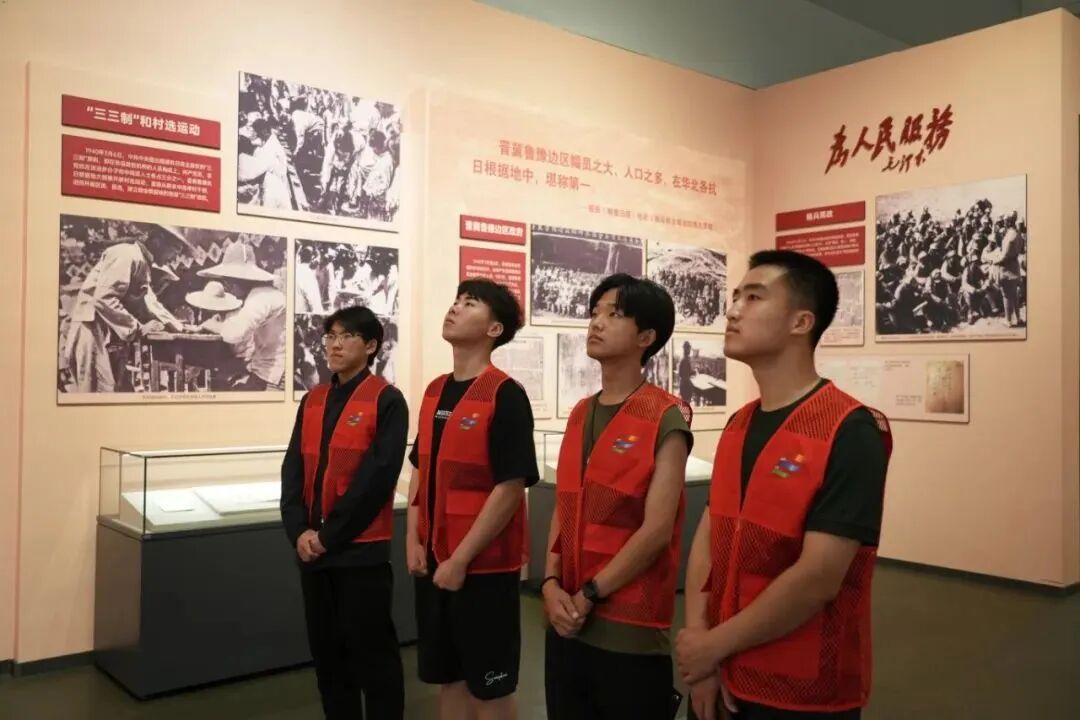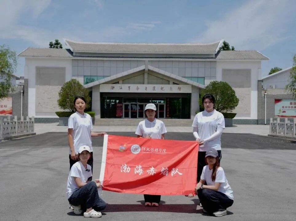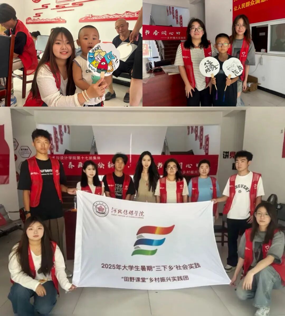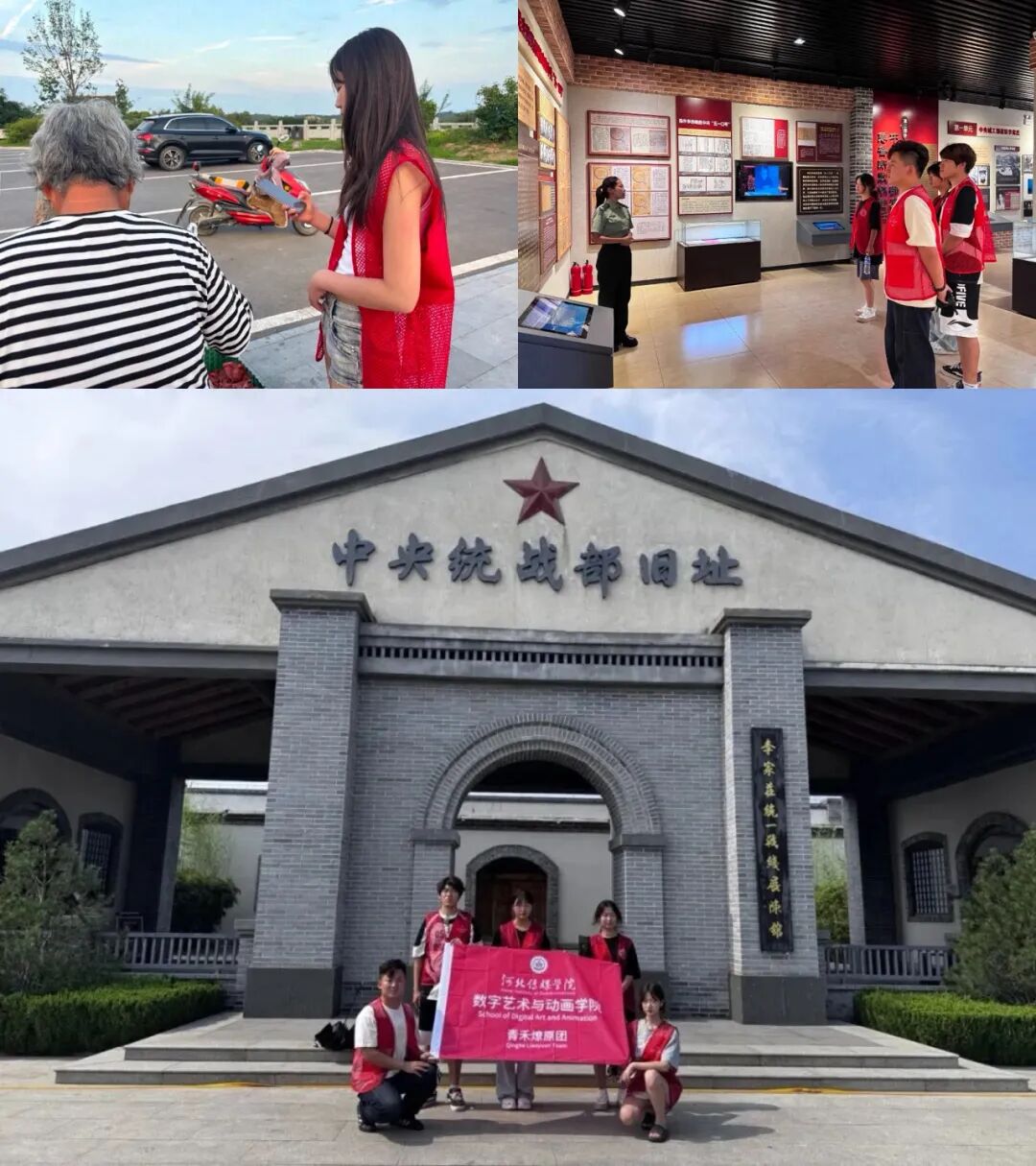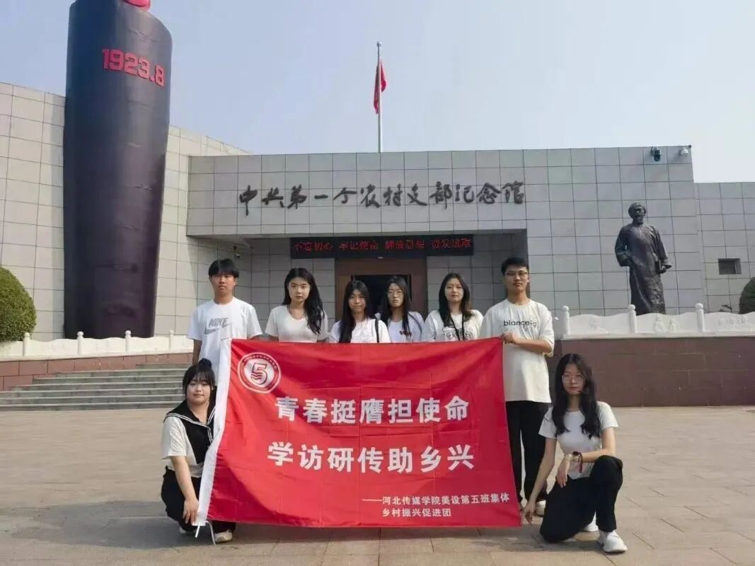 同时,不乏许多实践团队以青春力量赋能乡村发展。渤海赤焰小队探访渤海革命纪念园,拍摄宣传片并开展红色宣讲,弘扬老渤海精神;“薪火青行团”小分队在梅花惨案纪念馆发起“云游直播”,以数字化手段强化历史记忆;海韵葡香助农队聚焦昌黎海洋生态与葡萄产业,摄制宣传片推动文旅融合;“情系桑榆,暖心助老”志愿服务队在老年公寓开展书画陪伴,传递青年温度;“田野青春艺术乡创”实践团在大周村开设美育课堂,通过竹画、扇面创作激发乡村孩子文化认同;“青禾燎原”实践队走访李家庄村民、五保户家庭及老兵群体,在调研中体悟坚持与信仰的力量;新世冀调研小组在陈列馆内学习狼牙山五壮士事迹,于精神洗礼中深感责任在肩。这些行动将红色基因、生态理念与艺术创意融入乡村沃土,绘就了文化振兴的青春画卷。