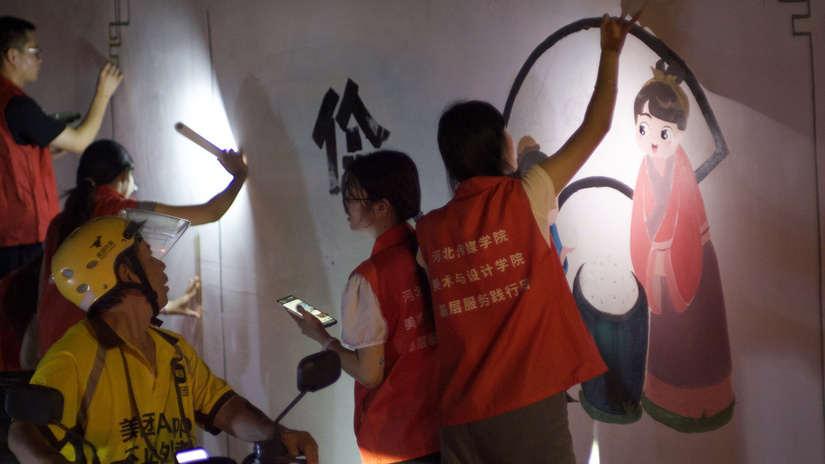 “丹青绘梦”实践团队联合栾城团区委、区社居中心开展暑期“三下乡”活动,发挥艺术特长服务基层,获石家庄市共青团专题报道。团队为古柏园社区独居老人送去生活物资,陪伴唠家常,队员们体会到基层服务更需情感共鸣;在银泉社区队员们教孩子们扇面绘画,融入传统文化,获得家长送来的锦旗与孩子们的纯真感谢,美育种子悄然生根;团队紧扣社会主义核心价值观与中华传统美德主题,为古柏园社区绘制墙绘,高温天里早晚赶工,让旧墙蜕变为“文化墙”,获居民称赞。队员们体会到乡村振兴的初心与回响,服务基层是双向成长:与传统文化对话,让专业对接需求,汲取岁月温暖。他们将继续以笔墨为桥,用画笔书写青春担当,在服务社会中晕染希望。