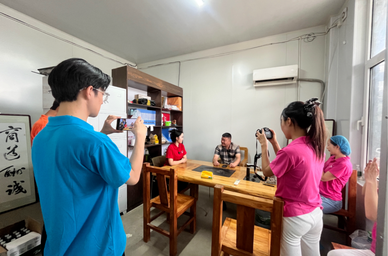 “宫”艺传薪志愿服务队奔赴河北省石家庄市藁城区开展社会实践,聚焦当地“三宫”文化与黄庄月饼传统手工艺,助力非遗传播。活动中,队员们走进宫灯工坊,观摩制作工序并尝试“镀金边”;探访宫酒酿造基地,了解古法工艺与历史传承;还深入宫面作坊和黄庄月饼传承点,见证宫面拉制与月饼制作过程,感受传统工艺的精妙与民俗内涵。此外,团队还对走访素材查漏补缺、全面梳理,将实训与探访片段整合成系列短视频,生动呈现藁城非遗与民俗魅力。此次藁城之行,是青年与非遗的双向奔赴。队员们以专业激活传统生命力,深切体会到非遗传承的厚重与责任。未来,团队将继续发挥专业优势,用镜头和声音记录文化故事,让青春力量成为传统文化永续传承的鲜活注脚。