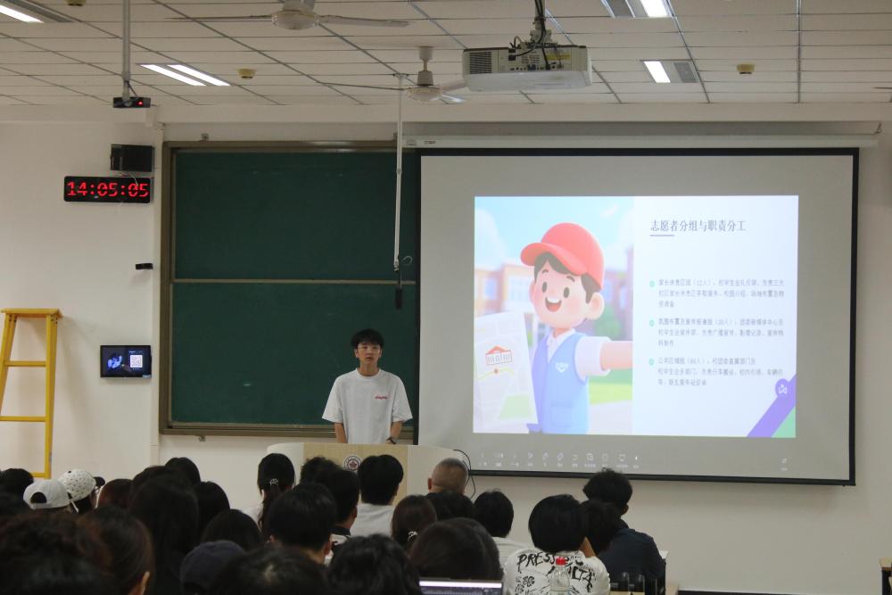 培训会对迎新志愿服务工作进行了安排部署,从迎新流程设计、服务站点分布、志愿者岗位职责、安全纪律要求及突发情况应对等方面进行了全面培训,进一步帮助志愿者明确工作内容、掌握服务技能、提升应急处置能力。