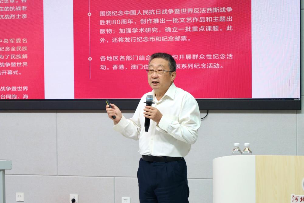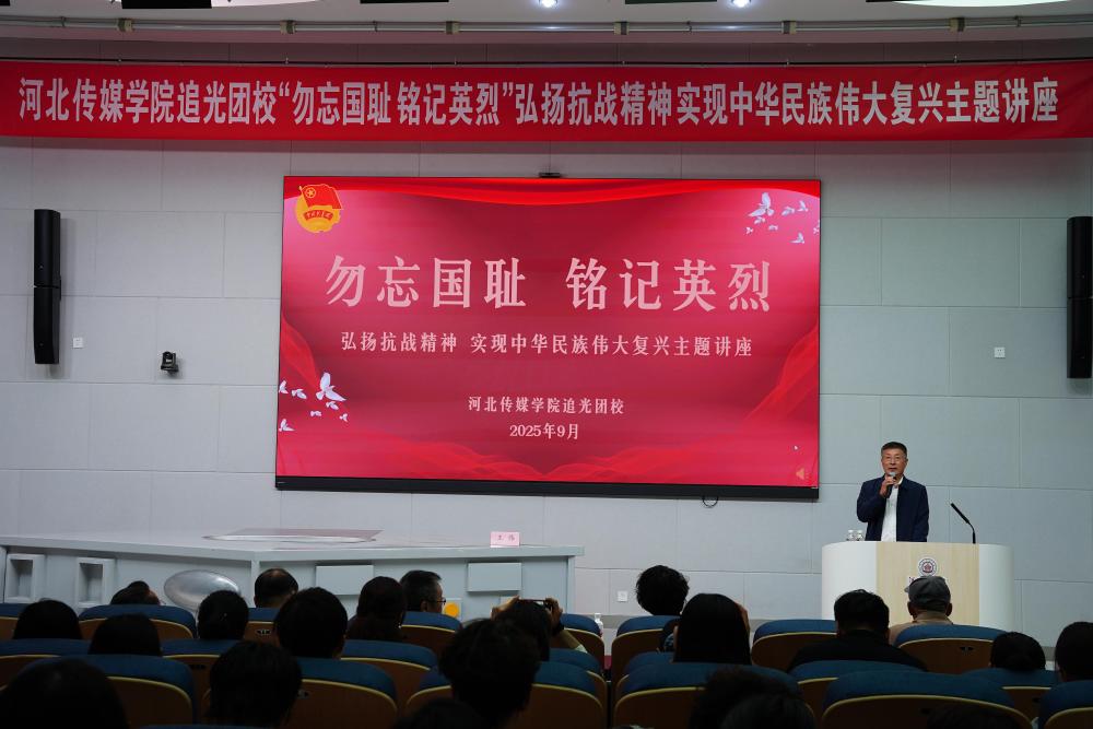 为纪念中国人民抗日战争暨世界反法西斯战争胜利80周年,弘扬抗战精神,9月24日上午,河北传媒学院追光团校在学术报告厅举办“勿忘国耻 铭记英烈”弘扬抗战精神实现中华民族伟大复兴主题讲座。