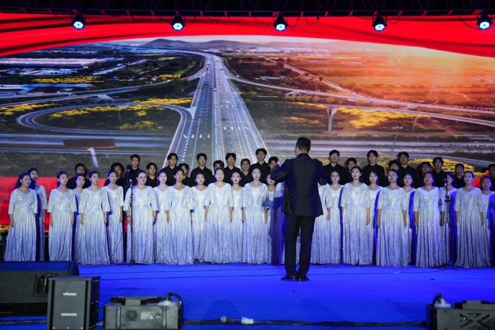 在校满天星合唱团《我爱你中国》的合唱声中晚会落下帷幕,也将“爱国、奋斗”的种子深深埋进新生心中。